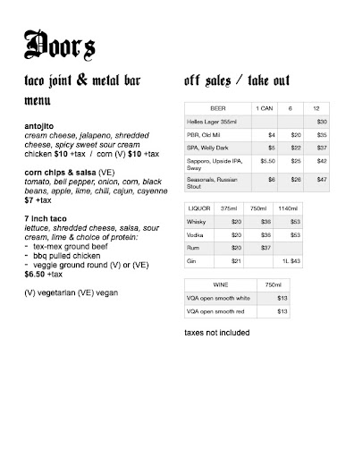About Doors Pub: Taco Joint & Metal Bar